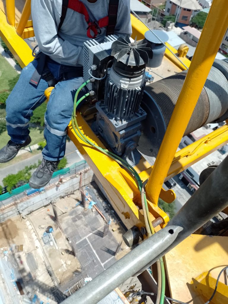 Servicios de montaje, telescopaje, arriostramiento, fabricación de accesorios, para grúas torre, así como reparaciones y mantenimiento preventivo y correctivo de motores electromecánicos